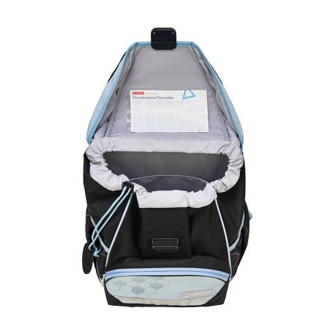 39 x 32 x 25 cm, anatomicky tvarovaná polstrovaná a prodyšná záda, nastavitelné ramenní popruhy, přední kapsa na zip, dvě boční kapsy s elastickými pásky, stabilní spodní deska s nožičkami, pohodlná rukojeť, reflexní pruhy Oralite, zavírání Click lock s odrazkou, 1 x odnímatelný odznáček na suchý zip, 1 x pompom, hmotnost 800 g, 22 l, voděodolná, bez PVC, výbava: penál prázdný 2 chlopně, sáček na cvičky, oválné pouzdro