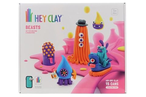 Z modelovací hmoty HEY CLAY si děti mohou vytvořit nepřeberné množství různých postaviček, zvířátek nebo oblíbených hrdinů. Po vymodelování je důležité nechat modely na vzduchu dostatečně zatvrdnout a tím okamžikem se mohou stát součástí dalších her a zábavy. Lze si tak jednoduše vytvořit vlastní figurky a postavičky, nebo schovat Hay Clay opět do kelímku pro další tvorbu. S mobilní aplikací Hey Clay (iOS, Android), kterou si zdarma stáhnete, a která nabídne dětem další možnosti rozvíjení fantazie, barev a kouzlení s vytvářením nových postaviček – kód v hodnotě 5USD pro otevření aplikace, najdete v každém balení. Sada Hey Clay obsahuje 2 plastové sochařské nástroje a 15 nádobek s měkkou, jemnou a voňavou modelínou a přístupový kód do aplikace pro zakoupenou řadu. Barvy nacházející se v balení Vám umožní vytvořit 6 postaviček. Věk 3+