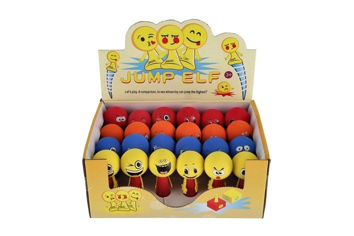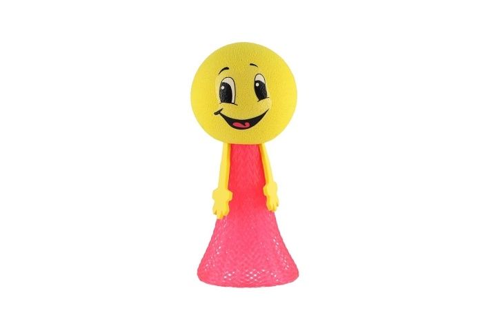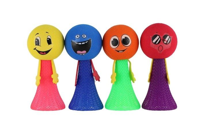 Vyskakující míček z pěny zabaví snad každého! Míček má i ručičky a také tělo, které je z bužírky. Tělo postavte na stůl či zem. Stlačte a pusťte! Míček parádně vyskočí. Velikost míčku s tělem: 10 cm