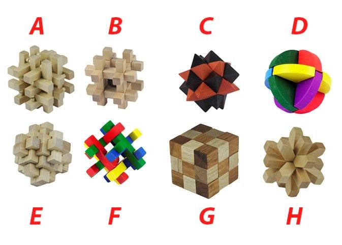 Hlavolam dřevěný, 8 druhů