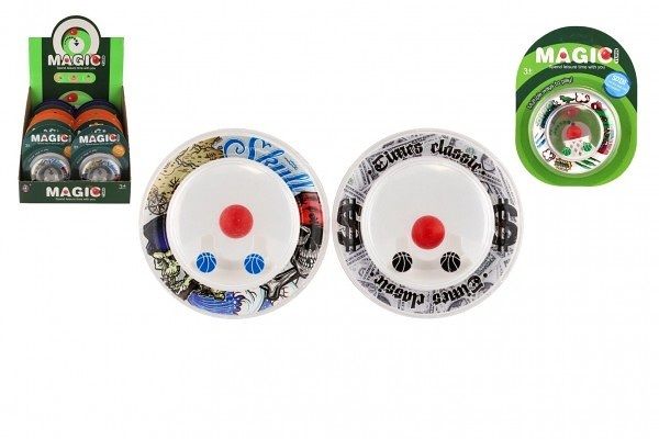 Hlavolam hra s míčkem plast 8cm 4 barvy na kartě 12x16cm