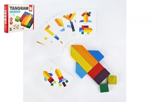 Hlavolam/stavebnice dřevo 8 dílků v krabici 23x17x4cm
