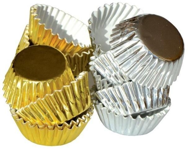Hliníkové košíčky na pralinky 50 ks č. P-904 zlatý/stříbrný
