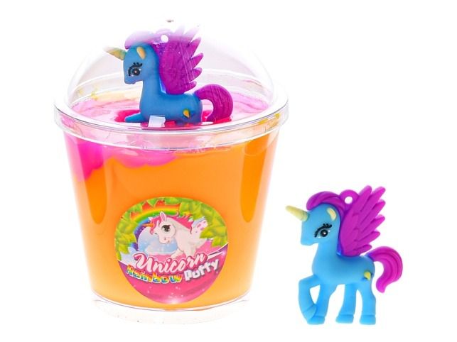 Hmota duhová v kelímku 9,5x7,5cm s jednorožcem 3 barvy !!Pouze mix barev, zasíláme dle skladových zásob!!