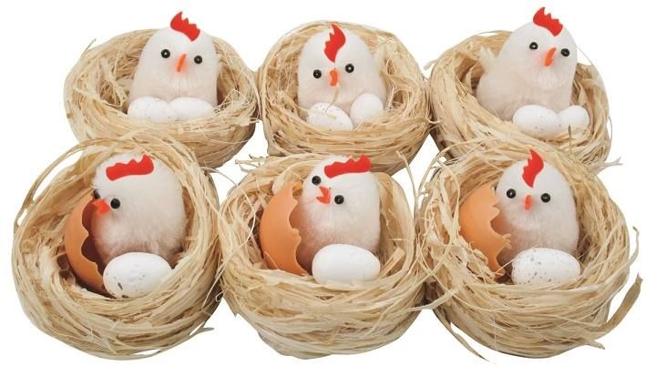 Hnízda s kuřátkem a vejcem 5,5 cm, 6 ks v krabičce