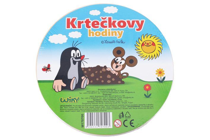 Hodiny dřevěné Krtek. Rozměry 20x1 cm.