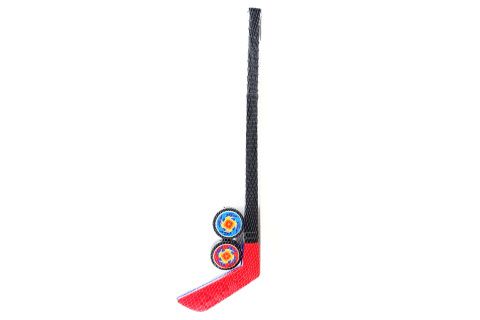 Dvě plastové hokejky v síťce o délce cca 57 cm, každá v jiné barvě a 2 puky. Věk 3+