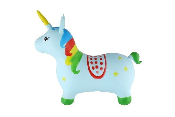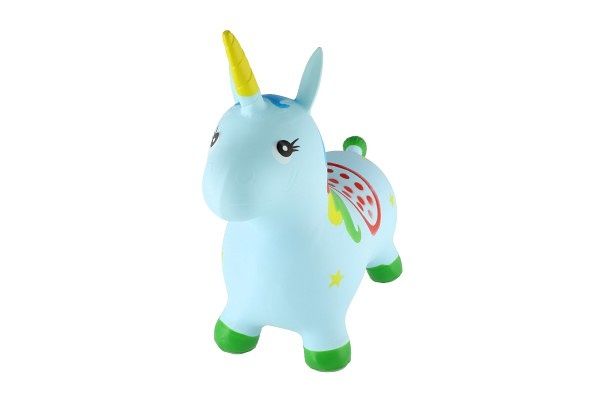 Gumové, pastelově modré nafukovací skákadlo pro děti ve tvaru jednorožce. Skákání pro radost i pro zdraví. Nafukovací hopsadlo je dokonalou hračkou pro každé neposedné batole.