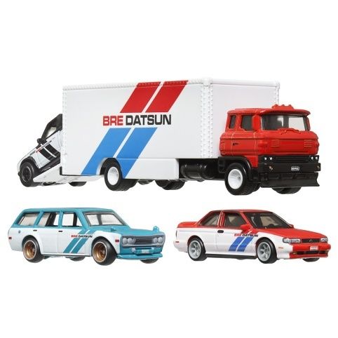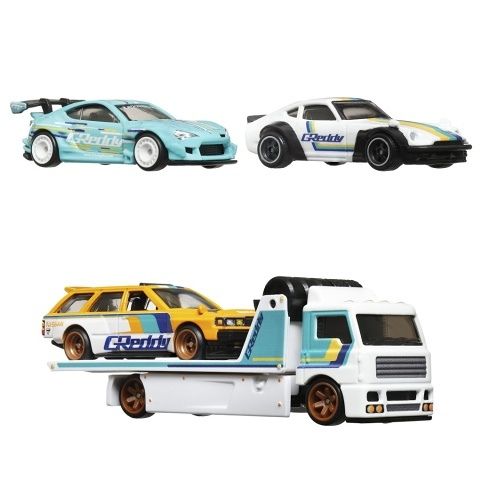 Hot Wheels 3ks prémiový angličák s týmovým tahačem - závod Le Mans