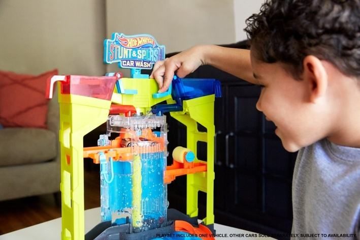 Herní set Hot Wheels® Color Shifters Akční automyčka kombinuje praktické prvky skutečné myčky aut s akčním světem Hot Wheels®. Výtah s klikou, dešťové potrubí, vypouštění vody na auta a možnost měnit barvu jakéhokoli Hot Wheels® Color Shifter™ angličáku. Myčka Hot Wheels® se dá připojit k dalším setům Hot Wheels™ City (prodávají se samostatně).
