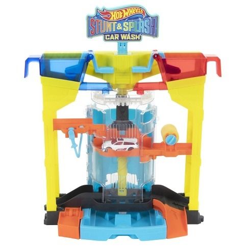 Herní set Hot Wheels® Color Shifters Akční automyčka kombinuje praktické prvky skutečné myčky aut s akčním světem Hot Wheels®. Výtah s klikou, dešťové potrubí, vypouštění vody na auta a možnost měnit barvu jakéhokoli Hot Wheels® Color Shifter™ angličáku.