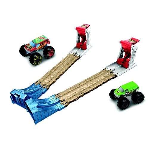 Hot Wheels® Monster Trucks Dvojitá destrukce herní set™ zahrnuje populární Monster Trucks Demo Derby a plastové nárazníkové vozidlo a dvě odpalovací zařízení s krátkou dráhou plus dvě rampy, takže děti mohou napodobovat epické čelní srážky v aréně! Pokaždé to nabízí skvělé shazování, závodění a skákání. Je to kompletní hra v krabici se třemi různými způsoby hraní. Připravte se na bitvy mezi hlavami, závodění bok po boku nebo zábavu s převrácením!