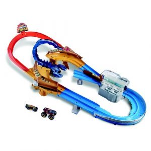 Jsi připraven na novou výzvu? Vytvoř tým ze svých nejlepších závoďáků a monster trucků a připrav se na pořádnou akci s tímto nadupaným herním setem od Hot Wheels®! V tomto herním setu budou tvá vozidla muset čelit smrtícímu škorpionovi. Dokážeš se mu postavit a zachránit svá vozidla před jistou zkázou? Jen zkušení řidiči dokáží projet parádní a nebezpečnou nakloněnou zatáčkou. Využij zrychlovače, vyraz do akce a staň se králem této dráhy!