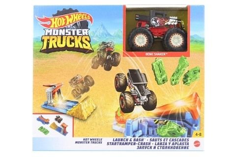 Úžasný herní set Hot Wheels® Monster Trucks Startuj a tref se, to je odpalování, shazování, rozbíjení a bouračky! Je to kompletní hra v krabici se startovacím zařízením, které odpálí Monster Trucks v měřítku 1:64 do vzduchu. Namiř Monster Truck na přistávací zónu nehod a pošli do vzduchu 4 rozdrcená auta. Tento set zaručuje špičkové kaskadérské kousky s epickým finále, ve kterém hromadu rozdrcených aut vybombarduje super nabitý Monster Truck! Postav pak rozdrcená auta zpátky na platformu a užij si tuhle kaskadérskou parádu znovu a znovu a znovu.
