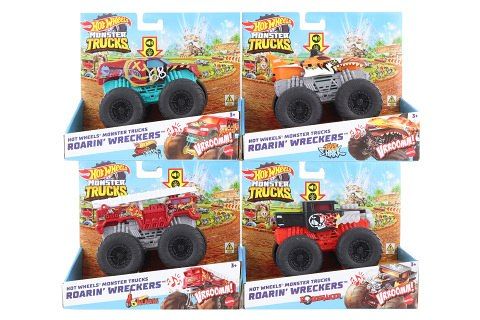 Tato kolekce Hot Wheels® Monster Trucks Svítící a rámusící vrak přináší všechny vzrušující bourací a rozbíjecí akce s bonusem světel a zvuků, které umocňují zážitek. Každý Monster Truck je v měřítku 1:43 a vyznačuje se úžasným designem a obřími koly značky Hot Wheels® Monster Trucks. Stisknutím tlačítka uslyšíte zvuky motoru a drcení, ale také znělku každého Monster Trucku - je to jako být na živé show. Každý Monster Truck navíc svítí skrz okénka! Děti je budou chtít sesbírat všechny, aby mohly zinscenovat soutěže se zvukovými efekty přímo u sebe doma (každý se prodává samostatně). Barvy a dekorace se mohou lišit. Věk 3+