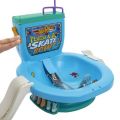 Stisknutím páčky na toaletní míse Hot Wheels® Skate parku spláchněte fingerboard a začněte trénovat! Tento set má úžasné skate povrchy včetně obrovské mísy, rampy z toaletního papíru, nájezdové rampy a grindové dráhy, a navíc úložný prostor pro 4 fingerboardy a 6 párů bot. Součástí balení je jedno exkluzivní prkno a jeden pár odnímatelných skate bot. Další prkna a boty se prodávají samostatně. Barvy a vzhled výrobku se mohou lišit.