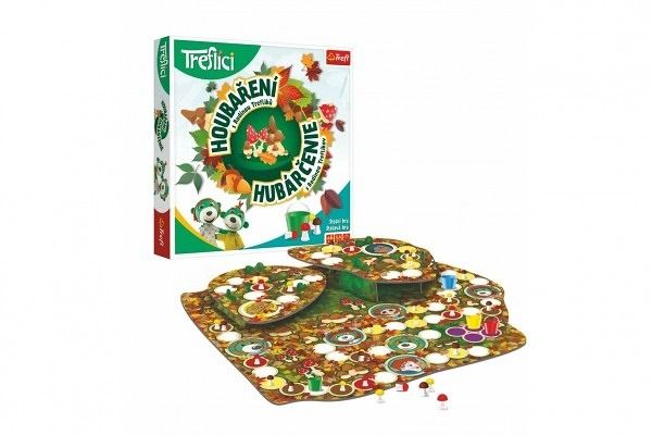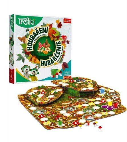 Těšíme se na hezký den! Zveme na houbaření s rodinou Trefliků. Kdo z Vás bude šikovnější v závodech o houby? Les v krajině Trefliků je opravdu obrovský, a je v něm málo hub. Kdo z Vás jich najde nejvíc? Je čas na houbaření s Treflikmi. Obsah balení hrací deska s prostorovými prvky, 4 košíky, 24 jedlých hub, 5 červených muchomůrek, kostka, návod.