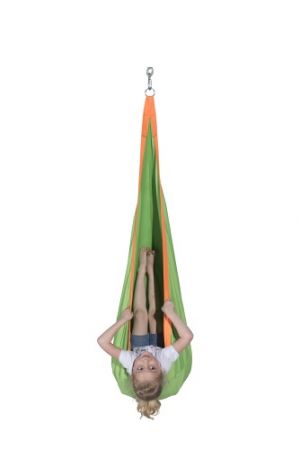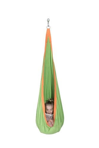 Visící pytel pro děti, zeleno-oranžový. Malý útulek pro děti i na houpačce.