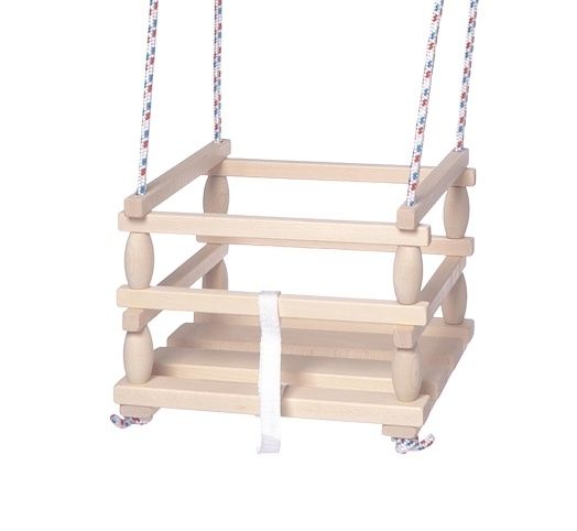 Houpačka s bezpečnotní zábranou určena nejmenším dětem, které již samy sedí. Místo pro zavěšení houpačky musí být vybráno tak, abybyl pro houpání dodržen odstup (min. 2 m) od stěn, plot a jiných překážek/objektů. V blízkém okolí místa pro používání houpačky se nesmí ponechat žádné ostré předěty. Podlahu v okolí houpačky volte z materiálu tlumící náraz nebo trávník. Použití v domácnosti i venku. Houpačka není povrchově upravena, nevystavujte dlouhodobě změnám počasí. Nosnost houpačky 80 kg, délka lana 1,7 m.