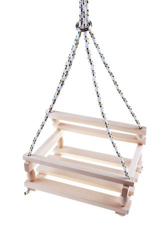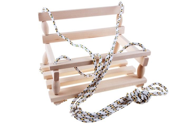 Krásná dřevěná houpačka v přírodní barvě. Vhodná pro použití