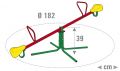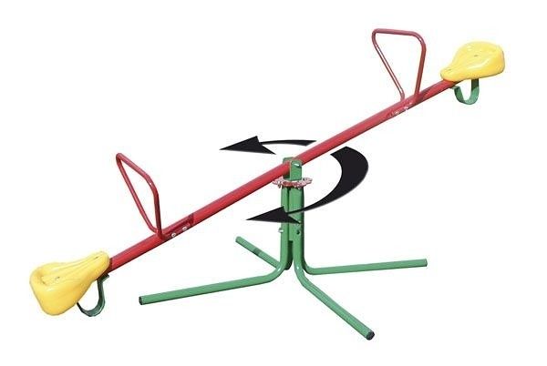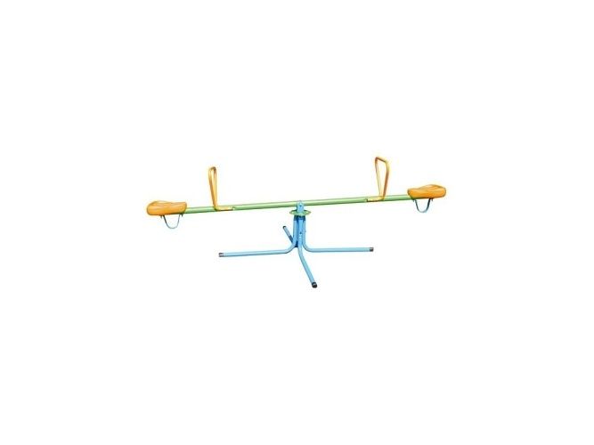 „Kovová dvouramenná houpačka – kolotoč, kovový modrý podstavec, zelené rameno a oranžová sedátka a držátka.Doporučená maximální váha dítěte na 1 straně kolotoče do 50kg. Výrobek je vhodný pro děti od 3 do 12 let v závislosti na jejich vzrůstu. “