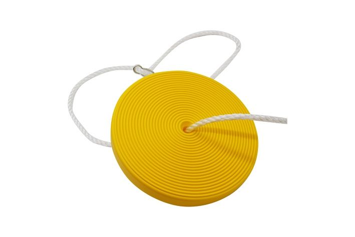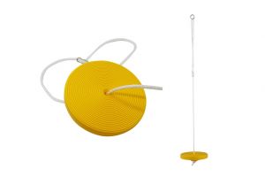 Houpačka plastový disk. Průměr sedátka 28 cm. Délka lana 1,8 m. PE lano o průměru 10 mm. Nosnost 100 kg.