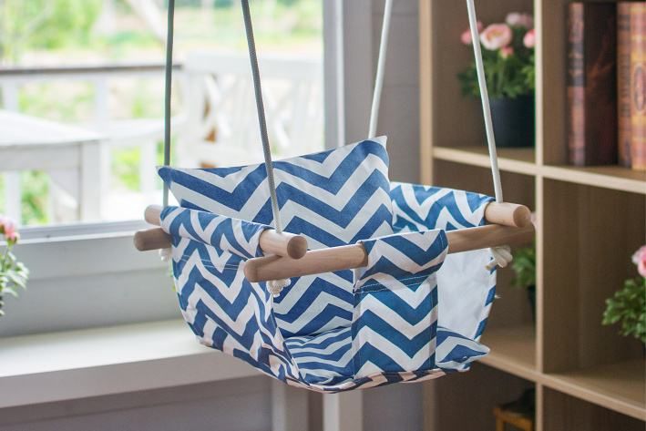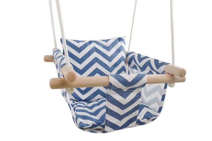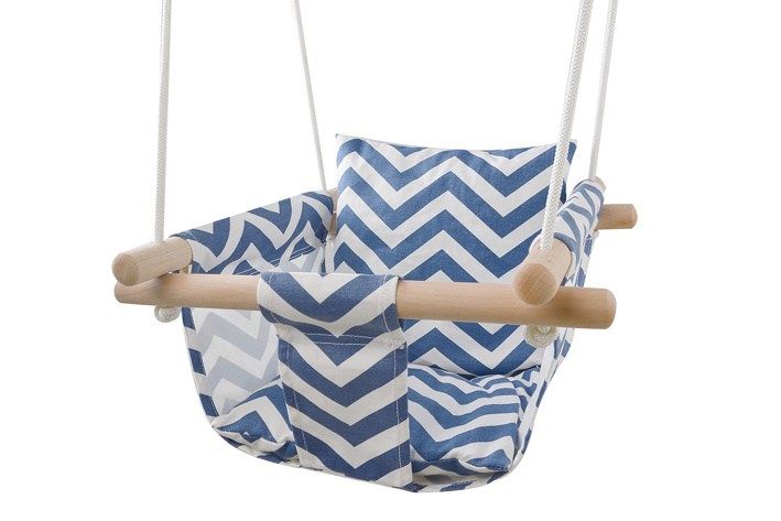 Houpačka plátěná vlnky. 100% bavlna. Délka závěsných lan 1,8 m. Polyesterová lana o průměru 7 mm. Délka dřevěných opěrek 40 cm. Nosnost 80 kg.