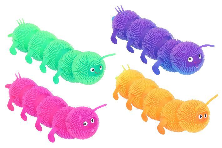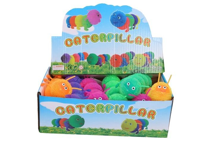 Mačkací housenka 21 cm. Velikost 21 cm. Světelné efekty. 3xAG3 zabudované baterie, nelze měnit. 12 ks display box. Více barevných variant. 4 varianty: oranžová, fialová, zelená, růžová.