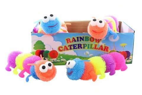 Gumová střapatá housenka. Při úderu bliká světýlko v přední části. Velikost housenky cca 16,5 cm. Věk 3+