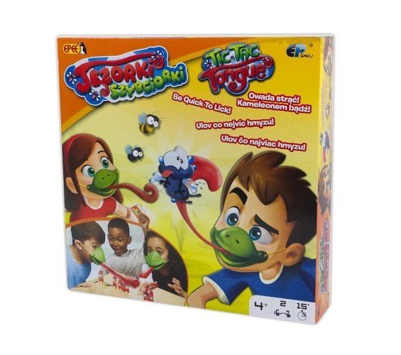 Postřeh. Rychlost. Přesná muška. Nasaďte si masku chameleona a vyzvěte kamarády na souboj. Otočte kartu a trefte svým mrštným jazykem odpovídající hmyz. Rychlejší a přesnější vyhrává. Zábavná společenská hra pro 2 hráče. Věk: 4+. Obsahuje: 2 masky chameleona, 2 náústky, 2 frkačky, 10 hracích karet, 10 karet hmyzu a pravidla hry. Pro děti od 4 let.