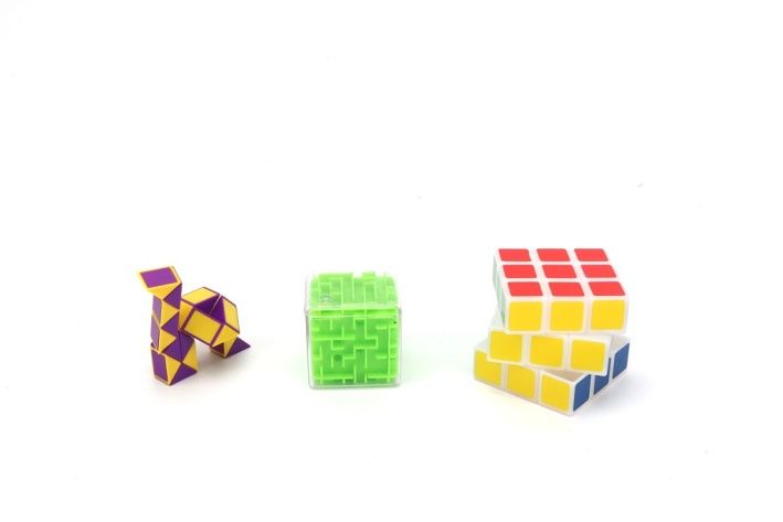 Hra Brain puzzle had/kostka/bludiště je souborem tří různých logických her určených pro děti i dospělé, které podporují rozvoj představivosti a logického myšlení. Tento set obsahuje tři samostatné hlavolamy – hadí puzzle složené z propojených trojúhelníkových segmentů v kombinaci fialové a žluté barvy, zelené plastové bludiště ve tvaru kostky a klasickou Rubikovu kostku s barevnými stranami. Hadí puzzle jsou flexibilní a umožňují různé tvary a konfigurace, což přispívá k tréninku prostorové představivosti a kreativity. Kostka s bludištěm je průhledná, takže je možné sledovat pohyb malé kuličky uvnitř, což zvyšuje interaktivitu a zábavnost hry. Rubikova kostka je klasická trojrozměrná mechanická hlavolamová kostka, která rozvíjí logické uvažování a motoriku. Celý set je zabalen v průhledném plastovém obalu s barevným papírovým přebalem, který je označen věkovou hranicí od 3 let. Balení je kompaktní a umožňuje snadné přenášení i uskladnění, což činí tuto hru vhodnou jak na doma, tak na cesty. Produkt je zařazen do kategorie her a puzzle, což potvrzuje jeho zaměření na rozvoj kognitivních schopností skrze hru.