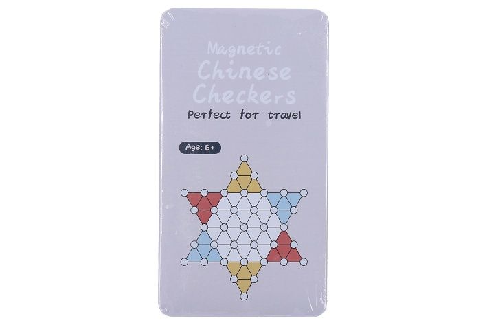 Hra čínská dáma magnetická cestovní. Rozměry pouzdra 10x18,5 cm. Plechové pouzdro slouží po otevření jako hrací deska. Figurky jsou magnetické.