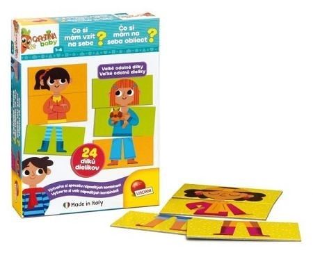 Hra pro nejmenší – vytvořte si spoustu nápaditých kombinací! Z osmi rozkládacích dílků může Vaše dítě vytvářet různě oblečené postavy tak, že umisťuje dílky do předlohy s obrysem těla. Hra pomáhá rozvíjet logiku a pozorovací schopnosti.Je vyrobena z materiálu, který je bezpečný pro nejmenší děti.Na předlohu s obrysem těla dítě umisťuje různé části s oblečením některé z 8 postav. Má na výběr 24 různých dílků. S trochou fantazie je možné vytvořit nejroztodivnější módní styly. Tato hra pomáhá dětem v rozvoji jemné motoriky, souhry oka a ruky, logiky a tvořivosti. Dílky jsou vyrobeny z vysoce kvalitního materiálu, který je odolný a bezpečný pro malé děti.