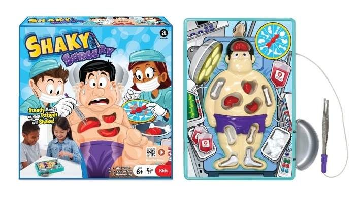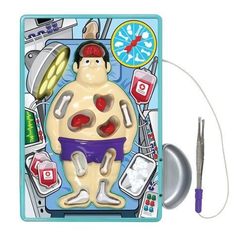 DĚTSKÁ CHIRURGIE – společenská hra (stolní) Podrobný návod v Českém jazyce s obrázky uvnitř! Obsah: 1 operační stůl, 10 anatomických částí těla, 1 sběrná miska, 1 pinzeta, 1 šipka, 1 špendlík, návod k použití Pro 2–4 hráče Věk 6+ Výrobek na baterie : 2× baterie "AA“ 1,5V nejsou součástí balení Na baterie: 2x AA (nejsou součástí balení)