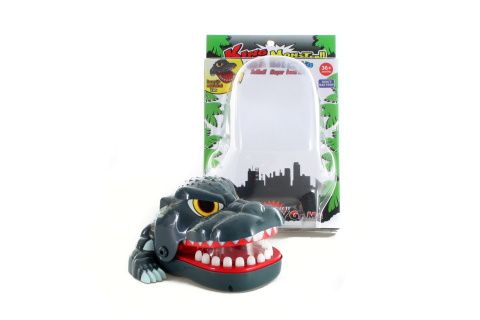 Zábavná potřehová hra. Krokodýl otevře tlamu a děti se střídají a postupně zatlačují jeho zuby. V určitý moment krokodýl tlamu zaklapne. Ten koho krokodýl nekousne vyhrává. Rozměry krokodýla cca 14 x 12 x 9 cm. Rozměry balení cca 21 x 24 x 11 cm. Věk 3+