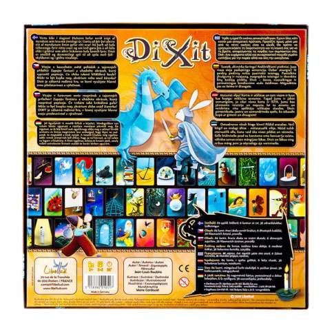 Rodinná desková hra na pohádkové vypravěče. Ve hře Dixit se stanete vypravěčem a budete vymýšlet vlastní příběhy. Na začátku hry dostane každý hráč do ruky několik obrázkových karet. Ty jsou poměrně nezvyklé, obrázky jsou velice různorodé a netradičně zpracované. Jeden z hráčů se stane vypravěčem - vybere si tajně jednu kartu z ruky a na základě jejího obrázku řekne nějaký příběh, třeba i jednu větu, jedno slovo nebo zvuk, které se pojí k této kartě. Ostatní hráči se pokusí najít mezi svými kartami tu, která nejlépe vystihuje vypravěčův příběh. Poté všichni hráči včetně vypravěče dají karty lícem dolů na hromádku na stůl, karty se zamíchají a vyrovnají lícem nahoru do řadu. Hráči pak skrytě tipují, která karta je vypravěče a nejlépe tak vystihuje řečený příběh.Hráči, kteří správně tipovali a vypravěč obdrží za každé správné určení karty body. Správné odpovědi jsou hodnoceny posunováním dřevěných králíčků - figurek - po bodovací stupnici, která je vtipně umístěna uvnitř krabice od hry.