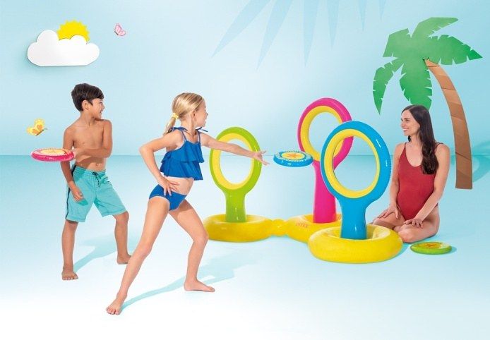 Nafukovací hra do vody se 3 disky. Rozměr je 1,78 m x 1,02 m x 1,04 m. Pro děti od 3 let.