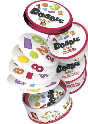 Populární hra Dobble ve verzi pro děti již od 3 let. Buď prvním, kdo najde stejné číslo nebo tvar na dvou kartách. Postřehová hra, která přináší dětem pozvolný úvod do poznávání tvarů, čísel a barev.