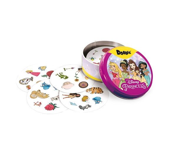 Rychlost, postřeh, reflexy! Dobble Disney princezny, to je 57 různých symbolů, 55 karet, 8 obrázků na kartě a každé dvě karty spolu mají společný jen jeden obrázek! Hra je kompletně v češtině i slovenštině a nabízí zcela unikátní zábavu. Děti zde hledají dva stejné obrázky na kartách při různých verzích hry (v pravidlech je popsáno celkem 5 her). Super jsou kulaté karty i jednoduchá pravidla vysvětlená doslova za pár sekund. Hra je určená především pro děti, ale i jejich rodiče - zkrátka pro všechny, kteří se chtějí pořádně bavit a nemají čas pročítat dlouhá pravidla. Plechová krabička zaručuje bezpečí karet a jednoduše umožňuje mít hru vždy u sebe. Vyzkoušejte i Vy postřehový fenomén Dobble a jistě budete překvapeni, jak i tak jednoduchá hra může být zábavná! V pravidlech naleznete popsaných všech 57 různých symbolů. Obsah balení je 55 karet v plechové krabičce a 1 česká, slovenská a rumunská pravidla.