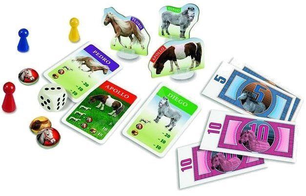 Dětská varianta nejúspěšnější české hry Dostihy a sázky s přizpůsobenými pravidly pro děti. Hráči nakupují své poníky a další potřebnou koňskou výbavu. Během hry se nenásilně seznámí s hodnotou peněz a hlavně se dobře pobaví. Obsah: 1 herní plán, 12 karet poníků, 12 kartónových figurek poníků, 12 plastových stojánků, 17 karet náhody, 162 dostihových peněz, 24 žetonů s ohlávkou a sedlem, 4 figurky ve čtyřech barvách, 1 bodová kostka, 1 návod ke hře