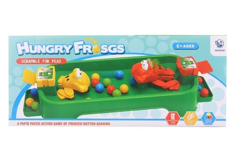 Hra hladové žáby pro 2 hráče. Úkolem je pochytat co nejvíce kulíček pomocí žáby. Rozměry balení cca 36 x 15,5 x 7,5 cm. Věk 6+
