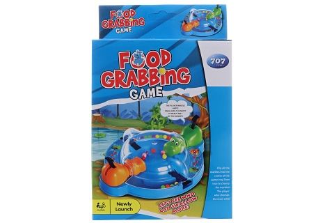 Cestovní hra hrosíci.Společenská hra pro 2 hráče. Úkolem je pochytat co nejvíce kuliček pomocí hrocha. Materiál plast. Baleno v krabici. Rozměry balení cca 15x24x4,5 cm. Věk 3+