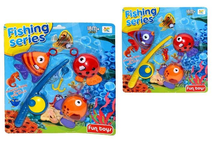 Hra lovení rybiček. 2 varianty - žlutá, modrá. Délka udičky 21 cm.