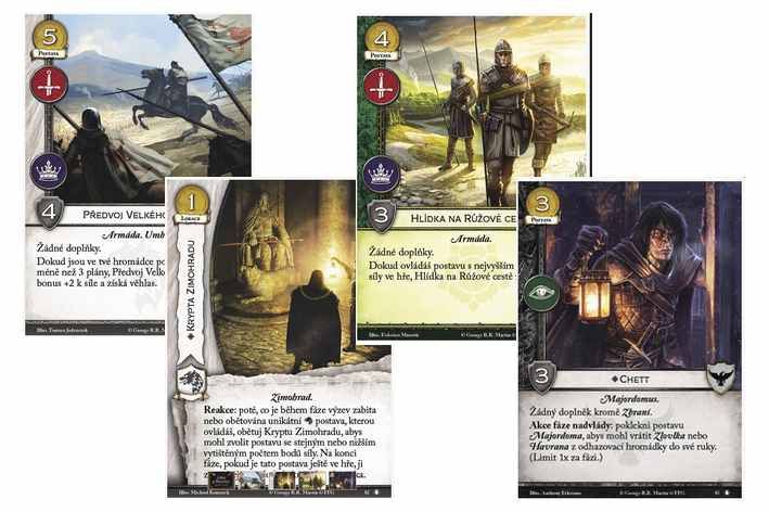 Tyto karty byly navrženy jako rozšíření stávajících balíčků a pro zvýšení různorodosti hry Hra o Trůny.