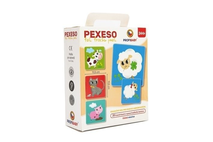 Balení obsahuje pexeso tak trochu jinak Zvířátka na 20 pevných kartičkách 11,5×11,5cm. Děti k sobě přiřazují správnou dvojici zvířátek a jejich mláďátek. Balení obsahuje 20 hracích karet (10 párů) z vysoce kvalitního kartonu, který vydrží dětské hraní.