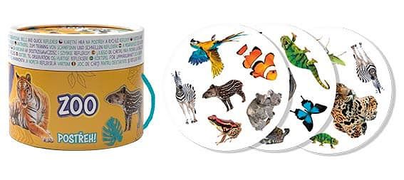 Karetní hra ZOO na postřeh a rychlé reflexy obsahuje 30 barevných kartiček ke hraní a omalovánku v tubě s oblíbeným pohádkovým motivem. Součástí balení jsou i pravidla, jak si hru zahrát.