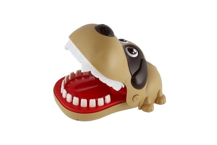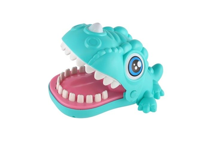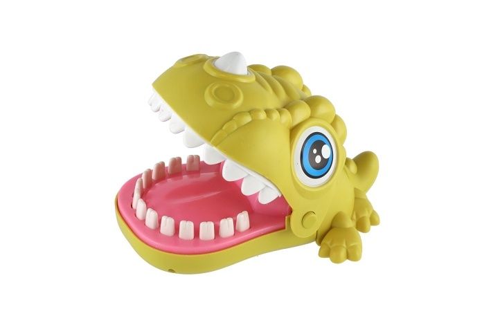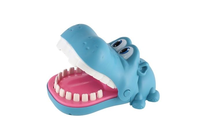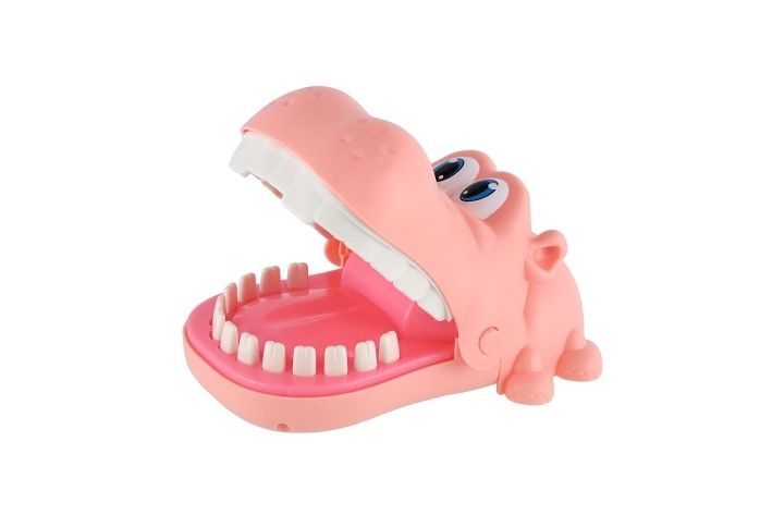 Zábavná postřehová hra zvířecí zuby, kdy zvířátko otevře tlamu a děti se střídají a postupně zatlačují jeho zuby. V určitý moment zvířátko tlamu zaklapne. Ten, koho zvířátko nekousne, vyhrává.