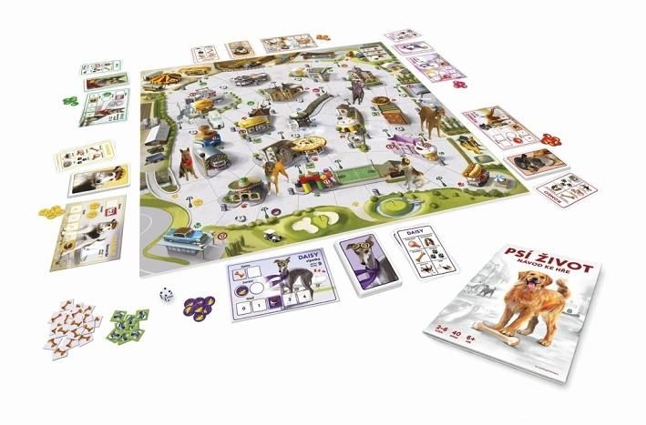 Rodinná stolní hra Psí život je ideální zábava pro všechny milovníky pejsků. Staňte se na chvíli psem a prožijte se svou rodinou či přáteli psí dobrodružství v ulicích. Pejsci se ve hře snaží získat a zahrabat tři kosti. V průběhu hry se však musí vyhnout odchytovému vozu útulku, očurávat lampy a tím značkovat své území, žebrat v restauracích, hrabat se v popelnicích, pít z fontánek, hašteřit se s ostatními psy nebo nosit noviny. Hra Psí život je určena pro 2 – 6 hráčů, je vhodná pro děti od 6 let, ale zvládají ji předškoláci. Součástí hry je herní plán, nabarvené figurky pejsků šesti různých plemen, model auta odchytové služby, hrací kostka, karty psů, karty činností psa, potřebné žetony (hlad, kost, popelnice, noviny, čůrání) a pravidla hry v češtině a ve slovenštině. Figurky psu° a model auta jsou do detailu propracovane‚ a kra‚sneˇ ručně nabarvene‚. Deˇteˇm se li‚bi‚ kouzelne‚ vy‚tvarne‚ zpracova‚ni‚. Deˇti se beˇhem hry i v pravidlech poucˇi‚ o psi‚m zˇivoteˇ. Hra Psí život je simulace života psů podle skutečnosti. Je lepší dříve koupit tuto hru a až poté štěně. Vlastnosti psu° odpovi‚daji‚ charakteristicky‚m rysu°m prˇi‚slusˇny‚ch ras. V samotne‚ hrˇe neni‚ zˇa‚dny‚ text, pouze symboly a obra‚zky. Kdokoli se hru naucˇi‚ za pa‚r minut. Psí život je prostě psina.