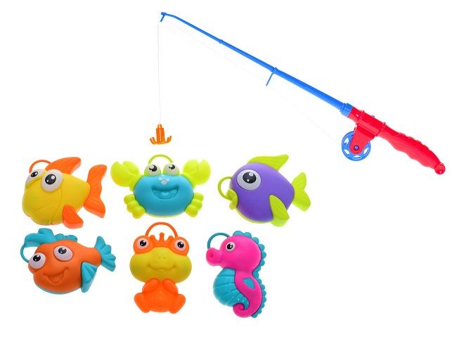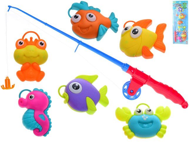 Hra rybář - rybářský prut 39cm + mořská zvířátka 6ks kartě