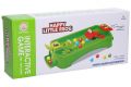 Hra skákající žabky. Velikost 35 cm. Hra pro 2 hráče. Zmáčknutím páčky na kraji žabka vyskočí a sní kuličku. Kulička spadne do důlku a vyjede pod páčkou ven. Která žabka sní víc kuliček, vyhrává. Obsahuje 12 kuliček.